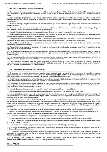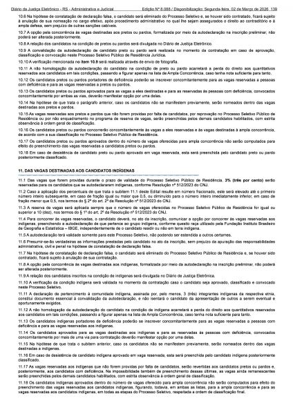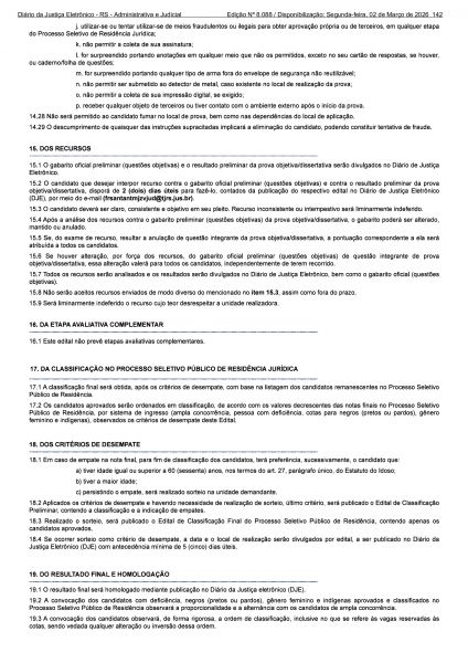 As atividades serão exercidas de forma presencial na Rua Ricardo Santiago de Godoi, 3605, em Santo Antônio das Missões, com possibilidade de teletrabalho a critério do Tribunal. O residente poderá atuar nos turnos das 12h às 18h ou das 13h às 19h.