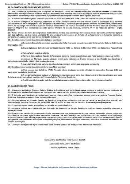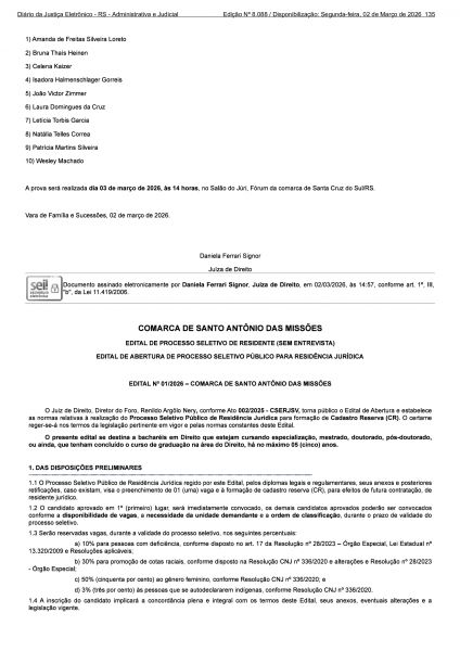 Estão abertas as inscrições para o Processo Seletivo de Residência Jurídica na Comarca de Santo Antônio das Missões. A iniciativa é voltada a profissionais do Direito que buscam especialização prática e acadêmica dentro do Tribunal de Justiça.